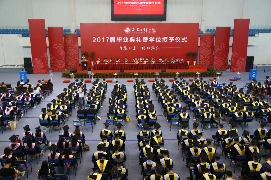 副校长汪胜前宣读了《南昌工程学院关于授予普通高等教育白帆等2733人学士学位、戴大千等168人辅修学士学位的决定》。伴随着音乐声,毕业生代表依次上台接受拨穗礼,并庄重接过毕业证书和学位证书。