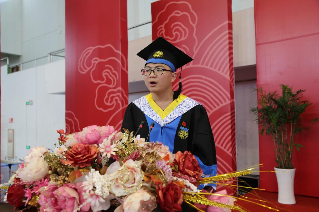 毕业生代表,2017年西藏公务员专项计划录取者,2013级水文与水资源工程专业曾猛军代表学生发言,表达了对母校的深情眷恋,号召全体毕业生继续发扬南工精神,不忘初心,不忘南工记忆,不忘未来的使命担当,砥砺前行。