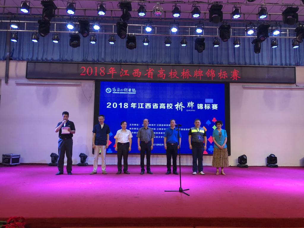 6月1日-3日,由江西省教育厅、江西省体育局主办,我校承办的2018年江西省高校桥牌比赛在我校大学生活动中心举行,全省11所高校110名运动员参加比赛。校党委副书记张立青、副校长樊后保出席比赛开幕式。