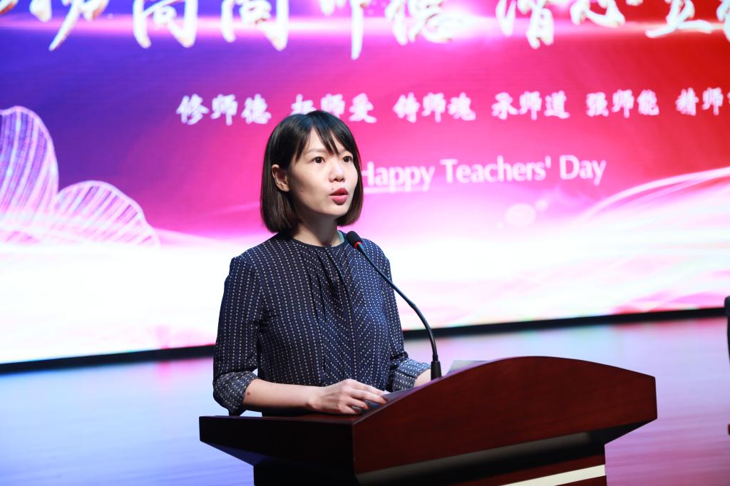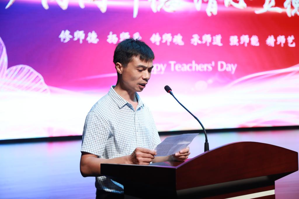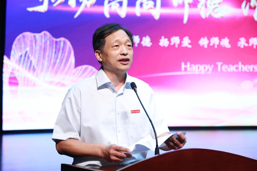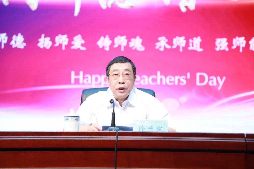 徐兰宾在讲话中首先代表学校向全体教师和离退休老同志致以节日的问候和崇高的敬意,向关心和支持我校教育事业发展的社会各界人士表示衷心的感谢,向胸怀志向、勤奋学习的广大同学致以良好的祝愿,向大会受表彰的先进表示热烈的祝贺。他指出,大会进行了新教师的入职宣誓,为从教30年教师颁发了荣誉证书,听取了受表彰的先进代表、学生代表的发言,令人深受启发和感动。他希望新教师尽快融入学校,提升教育教学水平;感谢长期从教教师坚持在教学一线,辛勤耕耘、教书育人,为教育事业发展作出的贡献;希望受表彰的先进珍惜荣誉,再接再厉,再立新功;希望广大教师、教育工作者学习先进、对标先进,积极推动学校教育事业快速发展。