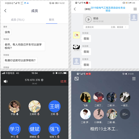 各班班主任认真听取了同学们居家学习、生活情况介绍,传达了上级和学校关于疫情防控的部署要求,转达了学校党委行政对同学们的关心关爱,引导同学们广泛开展防控知识学习,认真做好自身防护,扎实进行线上学习,严格按照学校安排,做好开学前的各项准备工作;鼓励大家在学习之余主动分担家务,在保证自身安全的情况下积极参与当地防控志愿服务活动。毕业班还针对毕业论文(设计)、毕业预警、考研复试、就业等内容进行了说明和指导。