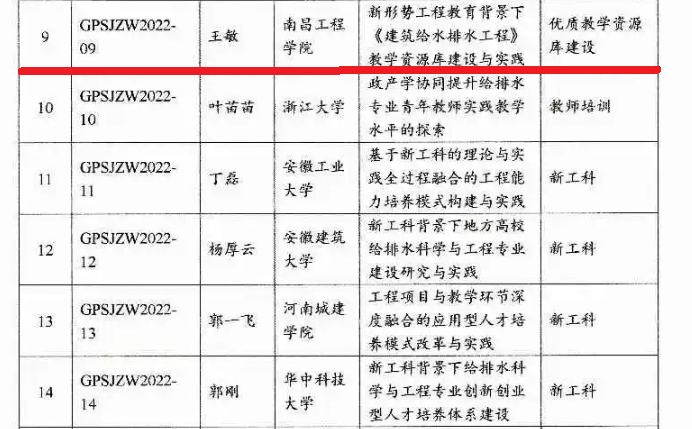 近日,《教育部高等学校给排水科学与工程专业教学指导分委员会关于公布2022年度教育教学改革研究项目评选结果的通知》发布,我校土木与建筑工程学院教师王敏申报的课题“新形势工程教育背景下《建筑给水排水工程》教学资源库建设与实践”获得立项。该课题由我校牵头,华东交通大学、东华理工大学共同参与申报,是我校首次获得教育部高等学校给排水科学与工程专业教学指导分委员会教育教学改革研究项目。(文/图 王敏 责任编辑 周冠佳 潘旭)
