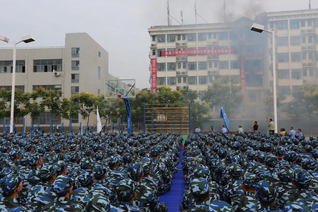 9月20日上午,我校联合南昌市高新区消防大队在学生公寓区开展了疏散逃生消防演练及消防知识宣传体验活动。此次活动包括疏散逃生、解救被困人员、消防灭火、消防知识宣传体验等内容。校学工处、保卫处、医院、军事教育学院相关负责人及各部门消防安全管理员、公安消防官兵,2016级新生近5000人参与了活动。