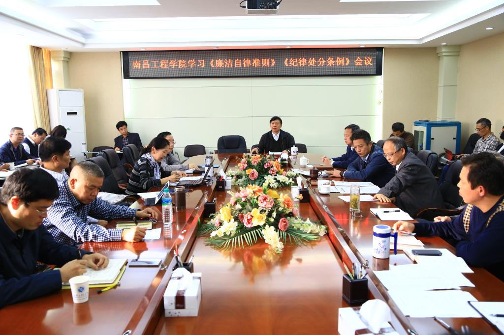 校纪委书记梁钢传达了中共中央办公厅印发的《关于认真学习贯彻〈中国共产党廉洁自律准则〉和〈中国共产党纪律处分条例〉的通知》》和《中共江西省委关于开展学习宣传<中国共产党廉洁自律准则><中国共产党纪律处分条例>活动的通知》;领学了《中国共产党廉洁自律准则》和《中国共产党纪律处分条例》,从“五大亮点”、“四个必须”和“八条规范”等角度对《中国共产党廉洁自律准则》进行了解读,按亮点、总则、分则与附则的逻辑对《中国共产党纪律处分条例》进行了解析。梁钢对进一步学习贯彻《中国共产党廉洁自律准则》和《中国共产党纪律处分条例》提出了三点要求:一是要认真深入学习,理解精神实质;二是各级党组织要切实落实主体责任,组织好本单位的学习贯彻活动;三是要将党纪党规铭刻在心上,落实到行动中。
