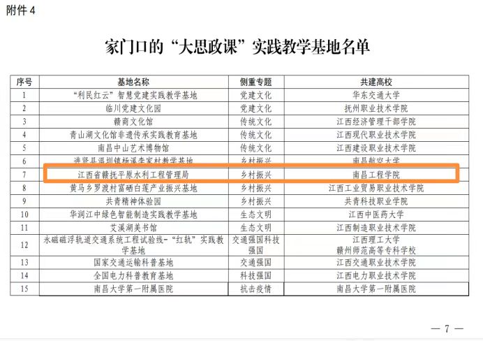 近日,省教育厅《关于公布“大思政课”建设综合改革试验区改革项目立项名单的通知》公布,我校马克思主义学院申报的“江西省赣抚平原水利工程管理局”获批立项为省级“家门口的‘大思政课’实践教学基地”。