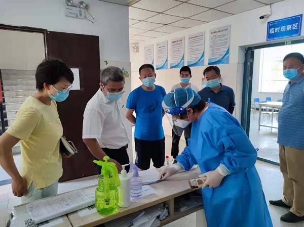 在学生宿舍14栋健康监测点,督查组听取了学生工作处有关负责人对14栋内部管理情况、入住流程和相关事项的汇报。殷安全强调,要切实做好新生报到防疫指导和信息汇总工作,用心用情为学生做好服务。