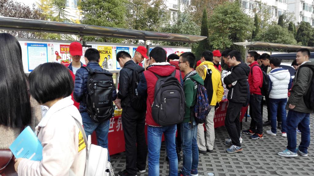 在第29个世界艾滋病日到来之际,为提高学生对艾滋病的认识,增长预防艾滋病预防知识,12月1日上午,校医院分别在一食堂和三食堂门口开展了“携手抗艾,重在预防”宣传活动。活动中,医务人员及学生红会志愿者通过张贴宣传画、发放倡议书、以及艾滋病知识有奖问答等形式,向广大学生宣传预防艾滋病相关知识。活动现场吸引了众多同学参与,气氛热烈,效果良好。(文/图 罗燕萍)