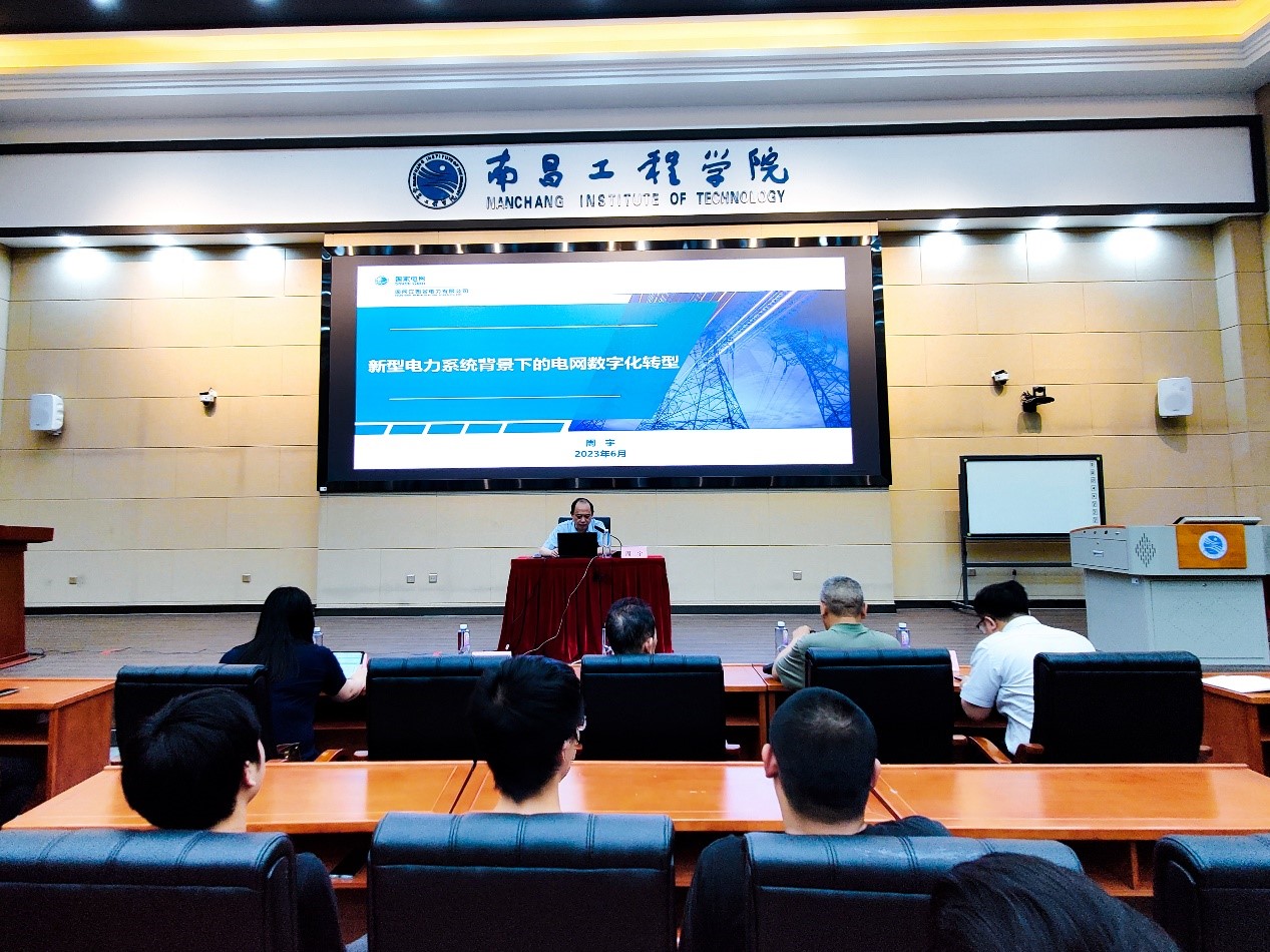 6月16日下午,国网江西省电力有限公司副总工程师兼科技数字化部主任周宇带队来我校交流,并做客我校第262期“鄱湖学术讲坛”。校长刘祖文会见周宇一行3人,副校长张兴旺出席活动。