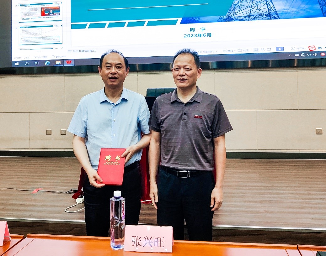 在讲座现场,张兴旺为周宇颁发我校客座教授聘书。讲座以新型电力系统为主要对象,紧紧围绕“电网数字化转型”,聚焦江西省各地电网公司实际案例,从“电力系统面临的挑战”“新型电力系统的建设意义”和“新型电力系统对电网数字化的影响”等多个角度出发,深入剖析了江西省电网发展业务转型对电力系统构建提出的要求和加快电网数字化转型的必要性。周宇结合多年工作经验,为在场师生传经送宝、传道解惑,勉励大家助力推动电网数字化转型发展。