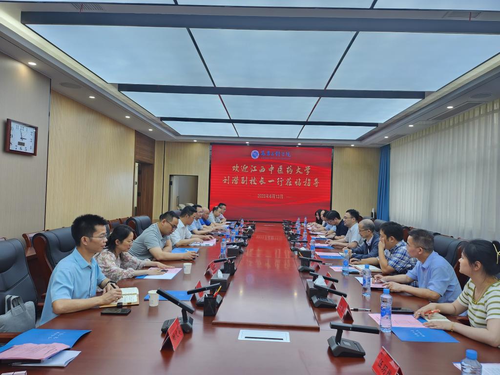 6月13日下午,江西中医药大学刘潜副校长一行10人来我校调研新一轮本科教育教学审核评估工作。校党委书记汪胜前在会前会见了刘潜一行。副校长陆伟锋出席交流会并致词。
