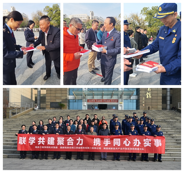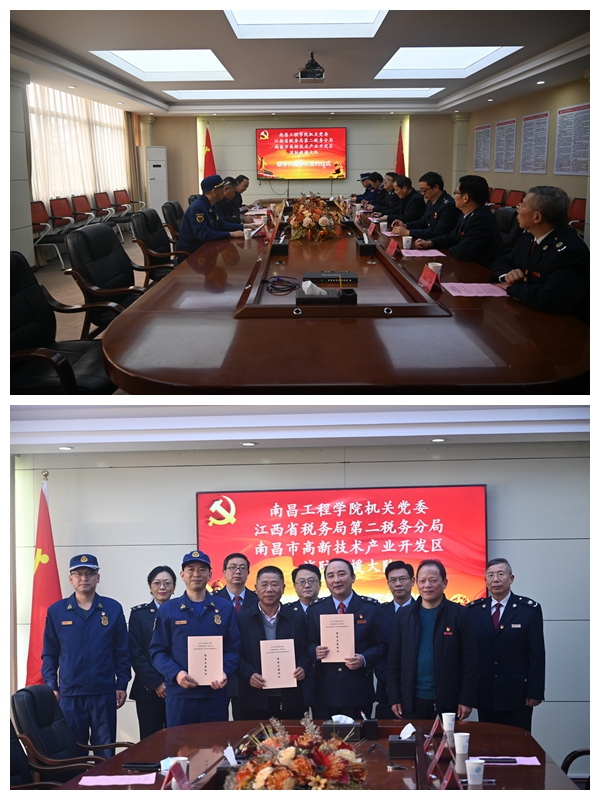12月8日下午,机关党委携手江西省税务局第二税务分局、南昌高新区消防救援大队开展“联学共建聚合力 携手同心办实事”主题党日活动。副校长李培生、校纪委书记殷安全及机关40余名党员参加此次活动。副校长张兴旺出席联学共建签约仪式。