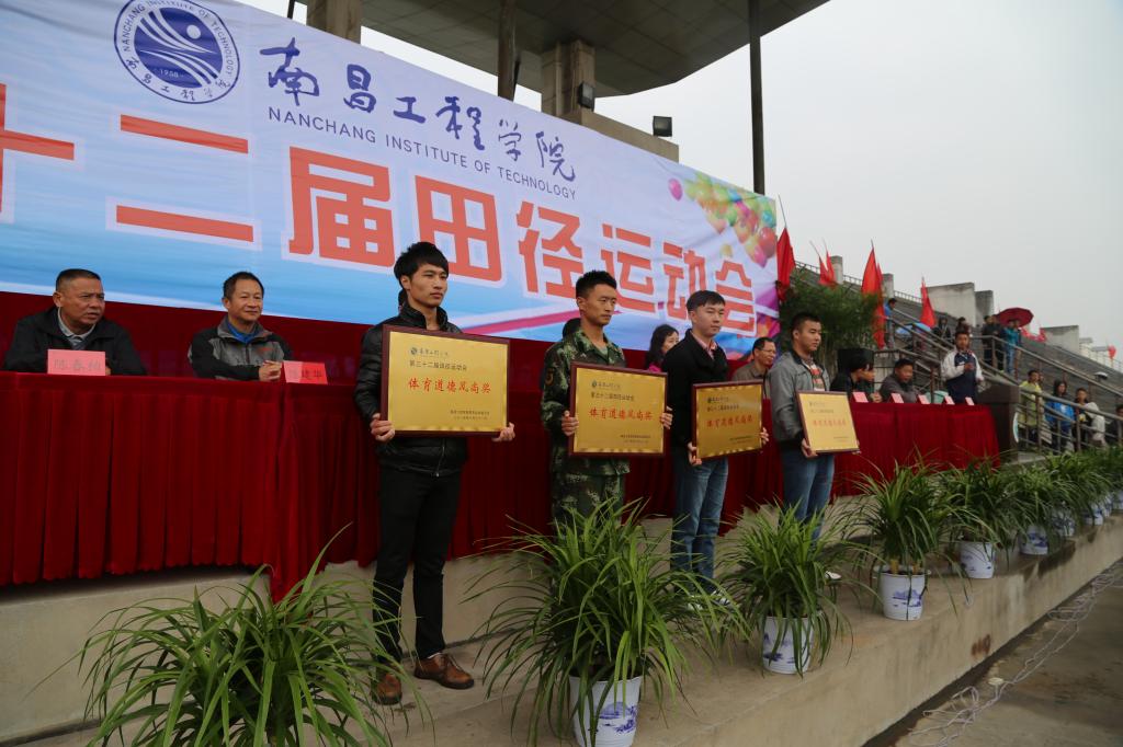 组委会委员、校工会主席田红敏宣读了《关于表彰校第三十二届田径运动会“体育道德风尚奖”代表队的决定》。人文与艺术学院、经济与贸易学院、机械与电气工程学院及军事教育学院凭借运动会期间的优异表现获得本届运动会体育道德风尚奖。