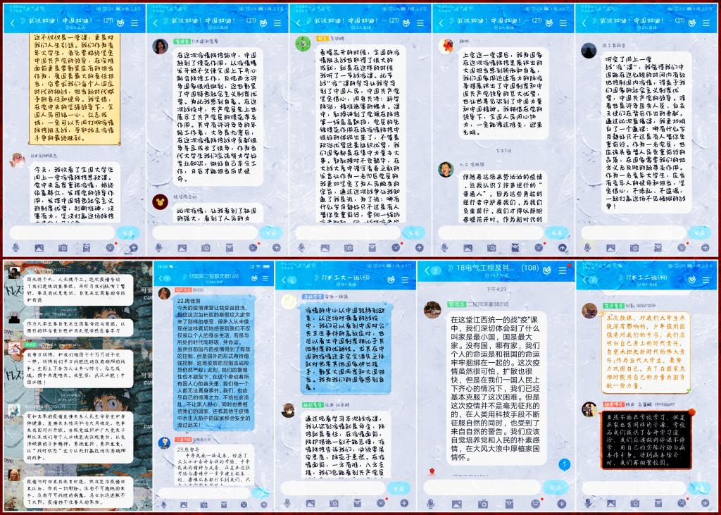 课后,我校师生以党支部、班级为单位,通过线上集体学习、云班会讨论等方式对授课内容积极思考、深刻领悟、畅谈感想。大家纷纷表示,将正确认识和看待此次战“疫”,继承和弘扬爱国主义精神,树立责任担当意识,练就过硬本领,不负青春韶华,不负时代使命。