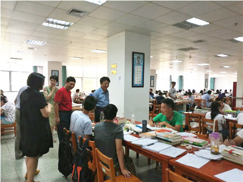今年暑期我校有1200余名学生留校,准备考研复习和参加勤工助学,金志农在图书馆自习室关切地询问了学生暑假学习生活情况,慰问了在校勤工俭学的学生。火热的三伏天里,学生们饱满的工作、学习热情给金志农留下了深刻印象,他欣然与勤工助学学生合影留念,并嘱咐学工处、后勤保障处要一如继往为留校学生提供良好的学习、生活保障,鼓励留校学生珍惜机会,认真学习、快乐学习、享受学习。