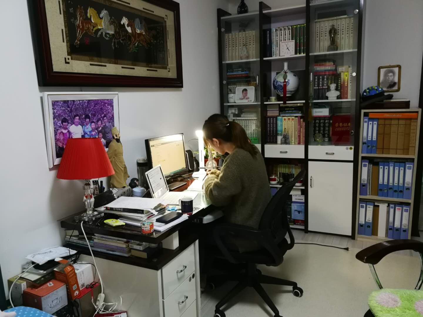 对石舒来说,录视频上课和在教室上课是不一样的,课堂上出现错误时可以立即更正,录网课则需要更加细致、更加准确。因此,她需要有一个更加安静的环境。她总会等到半夜12点,等家人们都熟睡了再悄悄起来录视频,也总是在凌晨1点左右工作才能结束。