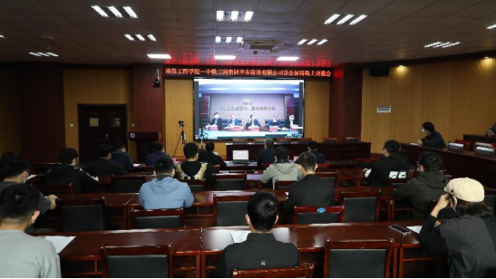 中铁三局集团华东建设有限公司党委副书记、纪委书记焦志成介绍了职工培养方案、校友发展现状、重点合作方向等,围绕重视学生实践经验积累、加强学生对建筑信息技术类知识的学习、加强学生实务操作能力等方面提出了建议。