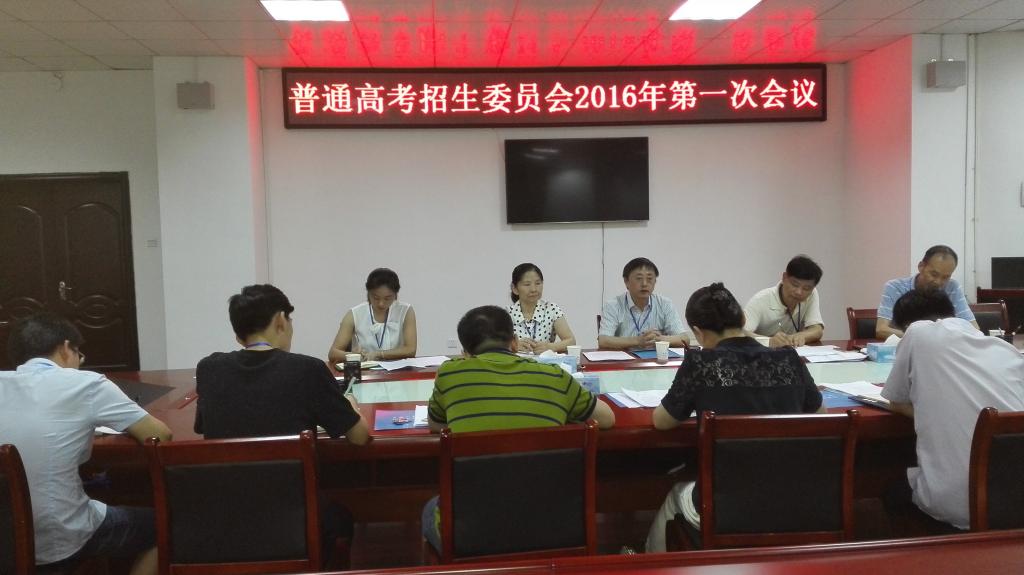 7月13日上午,我校2016年普通高考招生委员会第一次会议在大学生活动中心B300会议室召开,高招委主任、校长金志农,副主任、纪委书记梁钢出席会议,副主任、副校长胡敏出席并主持会议,全体高招委委员、招就处成员参加了会议。