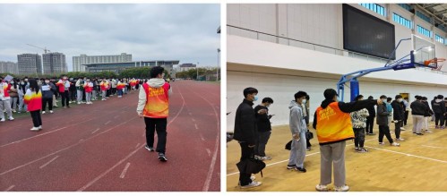 李家文、阮晶晶两位老师是学院辅导员队伍中仅有的住在瑶湖校区的老师,组织好1900余名在校学生的几轮全员核酸检测,时间紧、任务重, 工作量非常大。他们任劳任怨、不计个人得失,顾不上家中年幼的孩子,勇敢地担负起工作职责,起早贪黑,带领大学生志愿者维持全院核酸检测队伍秩序与纪律,指导志愿者队伍高效有序开展工作,实时统计好相关数据。大学生志愿者们有的在检测现场一线身着防护服维持秩序,有的在操场上手举班牌,集结各班学生有序排队并听从安排逐步进入体育馆检测点,志愿者们相互配合,耐心帮助同学们应对突发问题。同时,大学生党员志愿者还坚守信工楼南面的13号执勤点,不辞辛苦地对取外卖等对疫情防控不利行为的学生进行劝阻与管控。