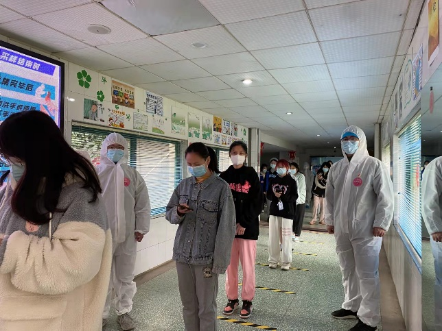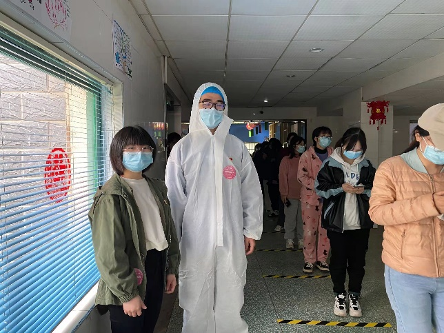 党员志愿者严格按照学校的要求,做好自身防护,听从安排,投入志愿岗位。在疫情防控最前线,党员们忙碌的身影随处可见,他们积极参与核酸检测志愿工作,耐心地协助同学们进行信息登记,完成扫码,为医务工作者的采样工作做准备;维持现场秩序,做好现场人流引导。党员们始终坚守在一线现场,保障师生能正确有序地进行核酸检测采样,和医护人员一起,筑起疫情防控的坚强防线。