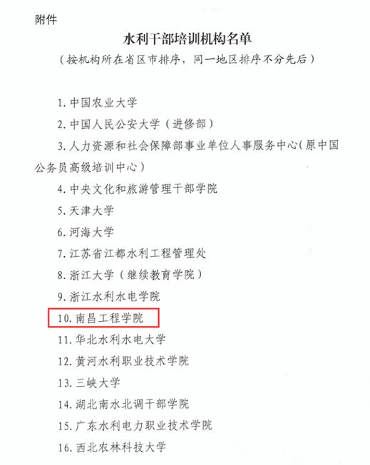 近日,水利部办公厅发布了《关于印发水利干部培训机构名单的通知》,我校获批进入水利干部培训机构名单。
