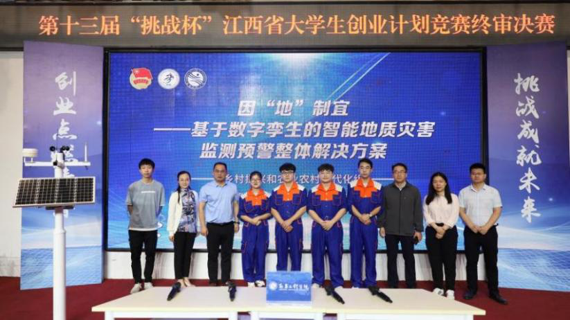 5月28日,第十三届“挑战杯”江西省大学生创业大赛顺利结束,共有117所学校提交的738件作品参赛,我校推荐的12个项目全部入围决赛并获1金1银10铜的好成绩。其中,由电气工程学院康兵等老师指导,2018级电气工程及其自动化01班王振等同学参与的《音纹声貌-变电站全景声场在线监测专家》荣获金奖,由水利与生态工程学院甘建军等老师指导,2020级地质工程01班张选城等同学参与的《因“地”制宜——基于数字孪生的智能地质灾害监测预警整体解决方案》荣获银奖。
