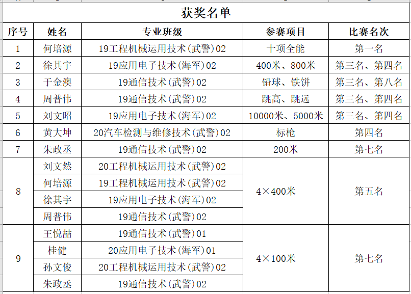 5月14日—19日,由省教育厅、省体育局举办的2021年江西省大学生田径比赛在江西师范大学瑶湖校区举行。本次比赛共有61所高校,1115名运动员参赛。我校士官生首次组队代表学校参赛。经过六天的激烈角逐,我校15人次获奖,学校获评“体育道德风尚奖”荣誉称号。
