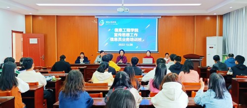 10月9日中午,信息工程学院在信工楼A208会议室举办宣传思想工作信息员业务培训班,学院党委负责人、党政办公室主任、辅导员,以及由各党支部宣传委员、团委学生会宣传部学生干部和各班级宣传委员等组成的信息员队伍50余人参加了培训。