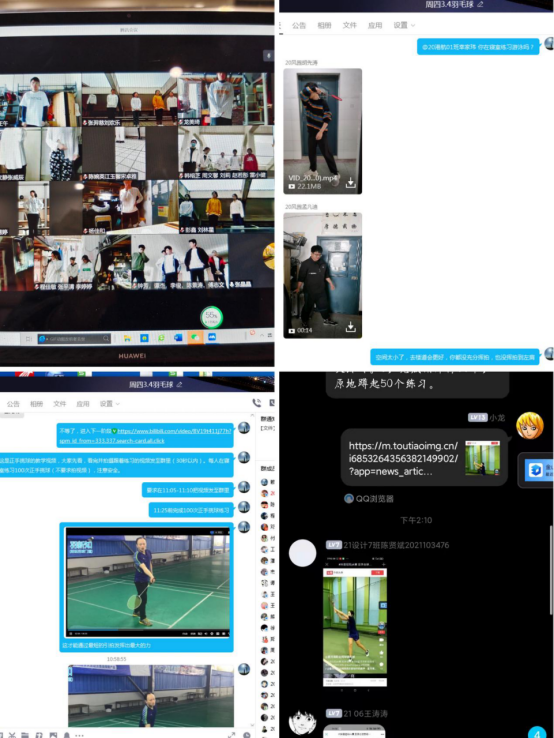 乐教乐学,创新独具特色的体育课堂。各教研室老师积极探索行之有效的方法,解决线上示范体育技术动作难点问题。如胡红霞老师在传统慕课的基础上,采用学习通同步课堂与腾讯会议相结合的方式,既能实时地与学生互动,查看学生在线情况,又能在线示范重点与难度动作,有效提高学生学习兴趣与质量。贺鑫森老师采用学习通直播与班级群聊等方式,将篮球运动员刘玉栋的成长记录融入到课堂教学中,引导学生探索体育精神,并将这种精神应用到当前抗击疫情的工作中,学生讨论热烈感触颇深。部门教学检查小组鼓励教师在教学过程中,重点加强教学组织和师生互动、生生互动环节,通过点名、提问、在线展示、讨论等掌控课堂,教学内容主要以讲授知识点+动作练习(模拟动作技术或身体素质)相结合,做到老师乐教,学生乐学。