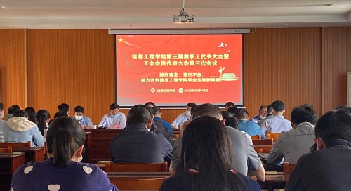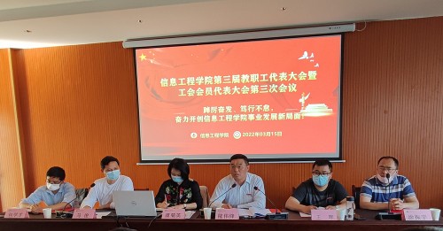 3月15日下午,信息工程学院在信工楼A208会议室召开了以“踔厉奋发、笃行不怠,奋力开创信息工程学院事业发展新局面”为主题的第三届教职工暨工会会员代表大会第三次会议。根据学校有关规定,全体教职工参加。校党委委员、副校长陆伟锋应邀到会并讲话。
