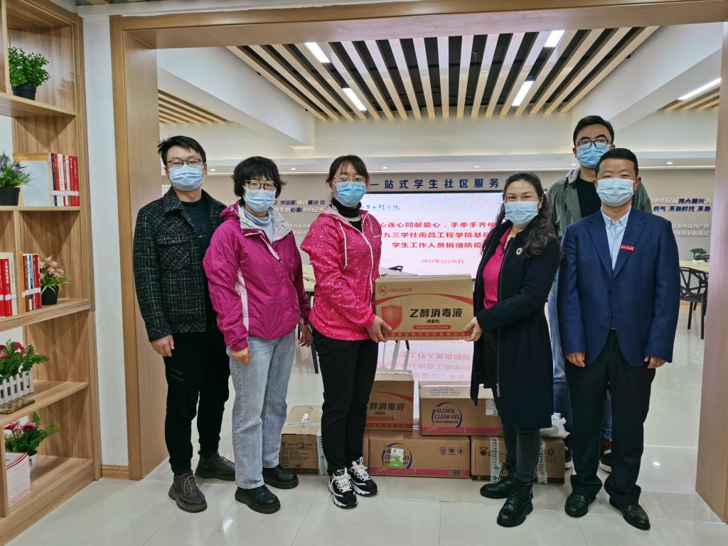 面对当前严峻的疫情防控形势,3月24日我校九三学社委员会发出“凝心聚力抗击疫情募捐倡议”,社员们纷纷响应倡议、全力支持,很快收到了来自30位社员的爱心捐款3750元,我校九三学社委员会负责人胡红霞迅速与学生社区工作人员联系,当得知目前社区需要洗手液、消毒液、医用手套等物资时,立即与药店联系将捐款全部购买物资。3月25日一早,胡红霞带领几位社员将6箱消毒液、60瓶洗手液及若干医用手套等物资送到学生社区工作点。