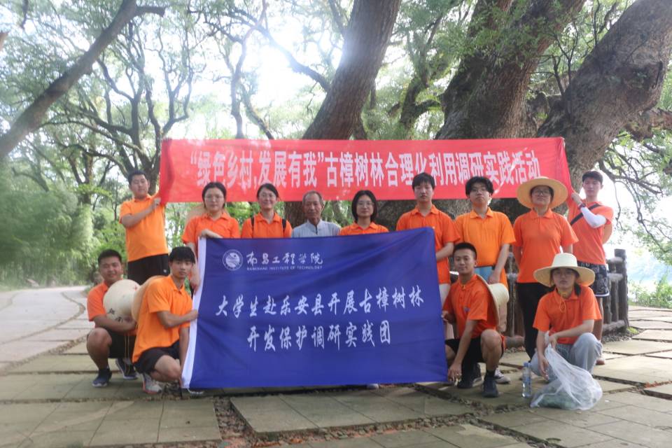 6月27日,水利与生态工程学院大学生赴乐安县开展古樟树林开发保护调研实践团师生一行13人在牛田镇流坑古樟树林开展暑期“绿色乡村,发展有我”古樟树林合理化利用调研实践活动。