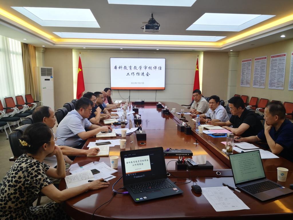 7月27日下午,学校召开新一轮本科教育教学审核评估自评自建工作推进会。校长汪胜前、校党委副书记吴泽俊、副校长张兴旺到会指导,审核评估各专项小组牵头单位负责人、评建办公室全体秘书参加会议,副校长陆伟锋主持会议。