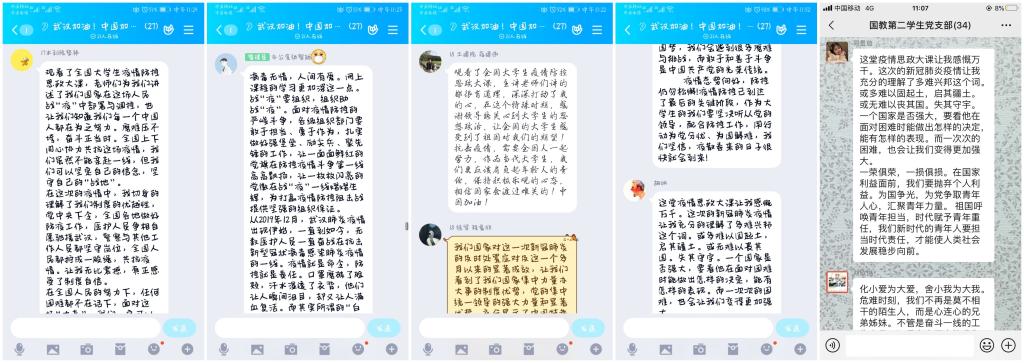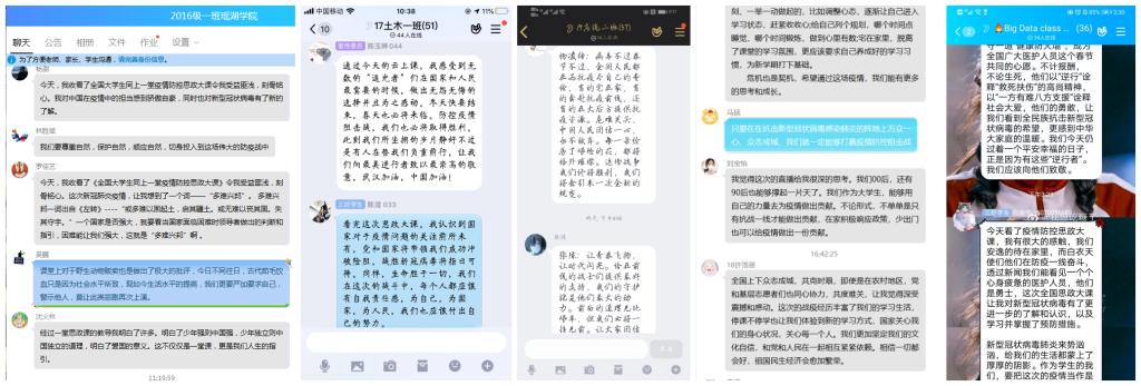 师生们认真聆听,积极思考,畅谈感受。全校学生以班级、党支部等为单位,围绕疫情防控工作开始以来的所见所闻所思、结合授课内容畅谈了自己的学习感悟。大家纷纷表示,通过课程学习进一步加深了对中国特色社会主义制度优势和治理体系的认识和理解,明确了作为新时代青年学生的责任与担当,坚信在党的坚强领导下一定能夺取抗“疫”战斗的最后胜利。