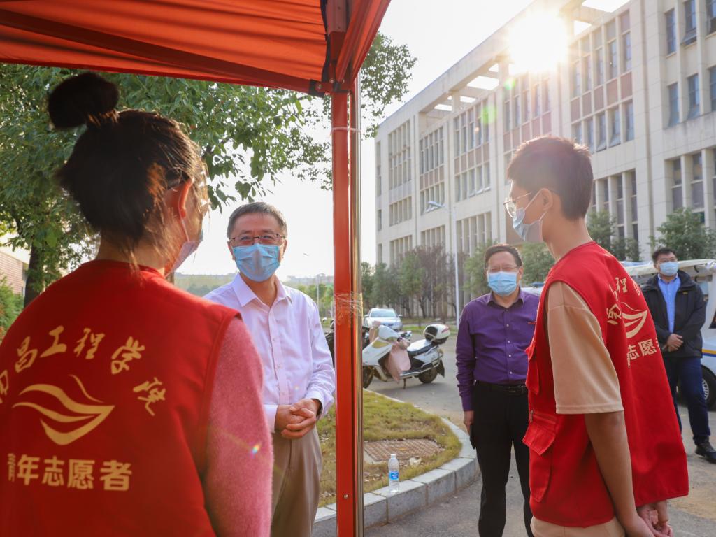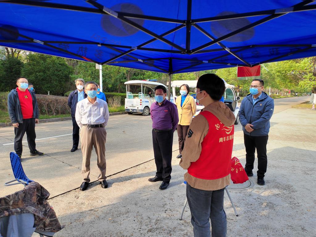 11月26日下午,校党委书记金志农,校长汪胜前,副校长李明、周敏丹带队看望值守在我校瑶湖校区疫情防控一线的青年志愿者。学生工作部、团委、保卫处、疫情防控办公室等相关部门负责人陪同慰问。
