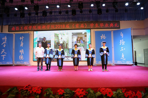 毕业典礼在雄壮的国歌声中拉开序幕。金志农为全体毕业生颁发了瑶湖学院纪念牌,并发表了致辞。他向32位圆满毕业的学生表示祝贺,充分肯定了他们四年来所取得的成绩;并结合自身经历和成长故事,对毕业生提出三点希望,一是要永远保持一颗感恩之心,经常写写家书,感恩父母、感恩老师、感恩同学;二是要永远秉承不断创新之念,做到“苟日新,日日新,又日新”,每天追求进步;三是要永远坚持恒久的团队精神,做到敞开心扉交朋友,真诚待人,认真做事,敢于担当,勇于奋斗。他还深情寄语毕业生:“不管你们身在何方,无论收获多少,常记母校就在身旁,记得常‘回家’看看,南工是你们永远的家园。”并热情邀请全体毕业生在学校60周年校庆之际返校团聚。
