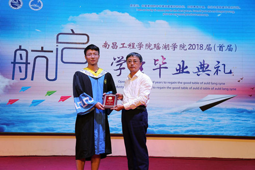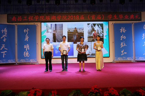 典礼上揭晓了瑶湖学院2018届学生心目中“最美教师”和“最美学生”的评选结果,副校长汪胜前和水利与生态工程学院院长彭友文分别为他们颁奖,毕业生代表怀着感恩之情为辛苦培育自己的导师和老师们献上鲜花。毕业生代表许松发言。教师代表谢帮华及校友代表肖潇分别为毕业生寄语。