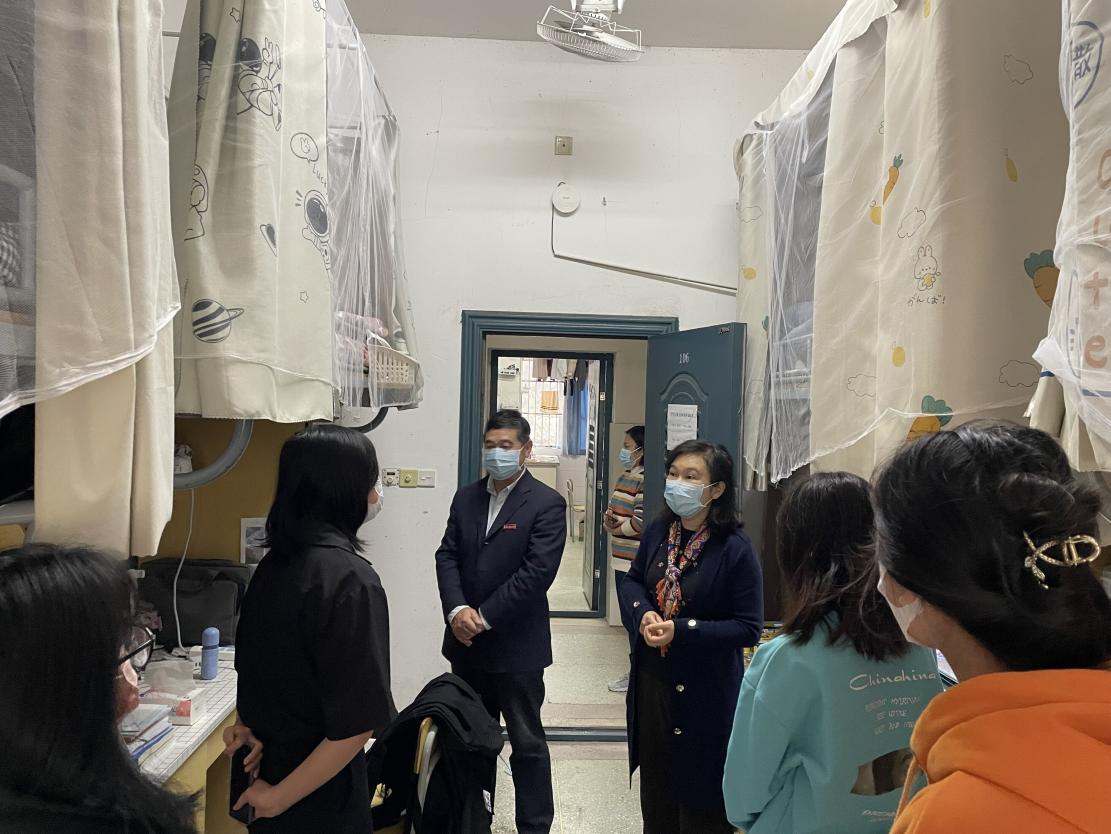 吴泽俊首先听取了学院近期疫情防控、学生日常管理、学生思想政治与心理健康等工作情况汇报,查看了疫情防控学生网格化管理台账,仔细了解学院三级管理人员的工作职责、各自分工和核酸检测情况。随后,来到学生宿舍12栋指导落实“三级包保”“五级联包”责任体系情况,了解严格管控校园出入期间学生的需求和思想动态。他对经济贸易学院在疫情防控中所付出的努力和取得的成绩给予充分肯定,感谢大家的坚守与付出,并要求在疫情防控期间,全院教师一定要提高政治站位,筑牢安全防线,党员干部带头落实疫情防控措施,夯实责任,切实保障校园安全;同学们要做好宿舍的开窗通风、卫生清洁工作、出门佩戴口罩等常态化个人防护工作,按照学校要求进行核酸检测,守护好大家共同的家园。(文/图 李赫之)