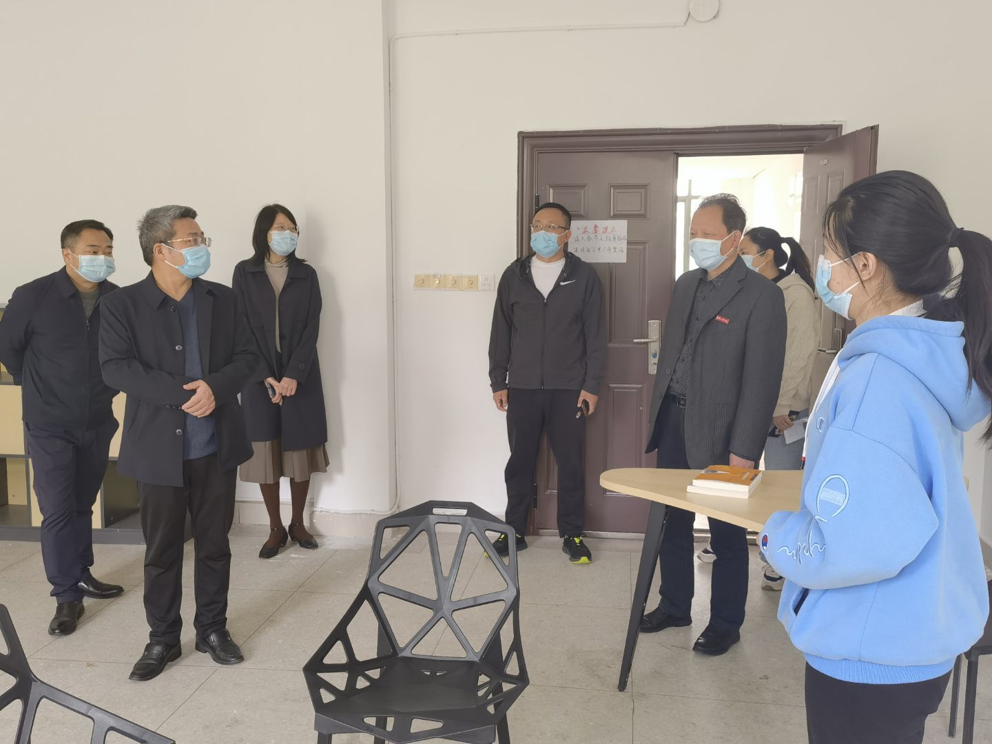 走访过程中,校领导与同学们进行亲切的交谈,详细了解当前我院学生线上学习和生活情况,仔细询问他们在学习和生活等方面是否有困难。校领导强调,疫情仍处在严峻复杂阶段,大家要严格落实学校疫情防控工作的相关要求,做好防护,注意保持宿舍卫生,适当锻炼身体,减少人员聚集,坚持每日三次的体温检查、健康打卡和适时核酸检查,做到不漏报、不隐瞒、不谎报,同时希望同学们在当前疫情防控的关键时刻保持良好心态,合理规划时间,安心学习生活,遇到困难及时与老师沟通,学校将竭尽全力帮助协调解决。