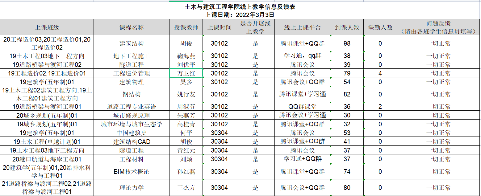 自3月18日开展线上教学以来,土木与建筑工程学院动员全体教师积极充分利用网络教学平台,全力推进线上教学并做到落实落细。通过全院教师的共同努力,通过QQ群课堂、腾讯会议、学习通等授课方式与学生架起了网络授课的桥梁。截止至3月23日,学院共开设线上课程教学86门(累计140门次),除少数实践课程不具体线上开课条件外,切实做到了应开尽开,将疫情对正常教学工作的冲击降到最低。