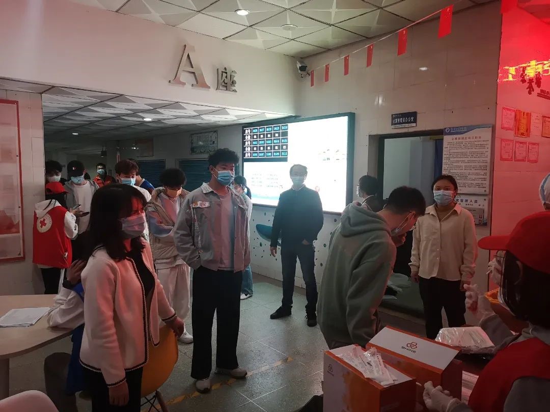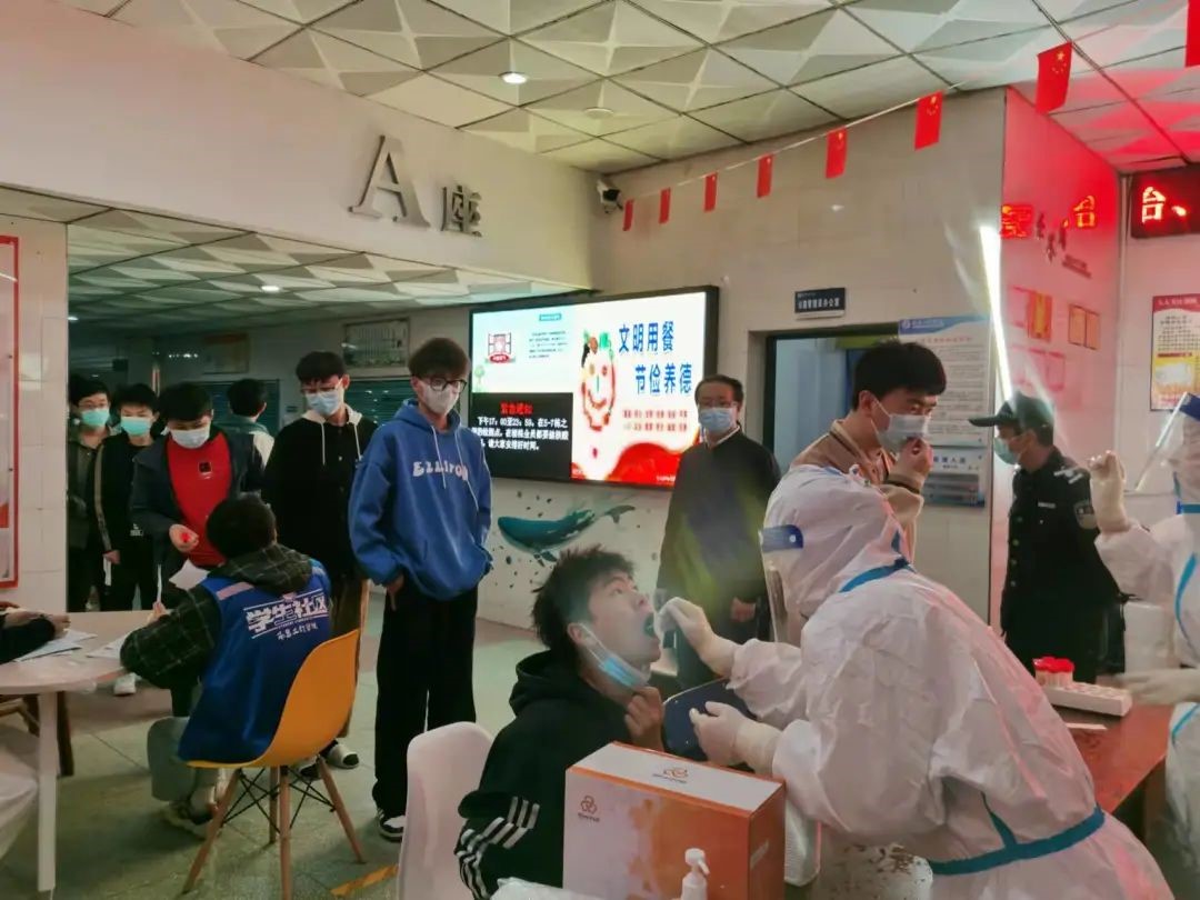 3月17日当晚全员完成核酸检测,教师、学生干部和党员都全线上岗,克服困难,对检测现场进行志愿服务以及秩序维护,保障核酸检测落实到每一个人。