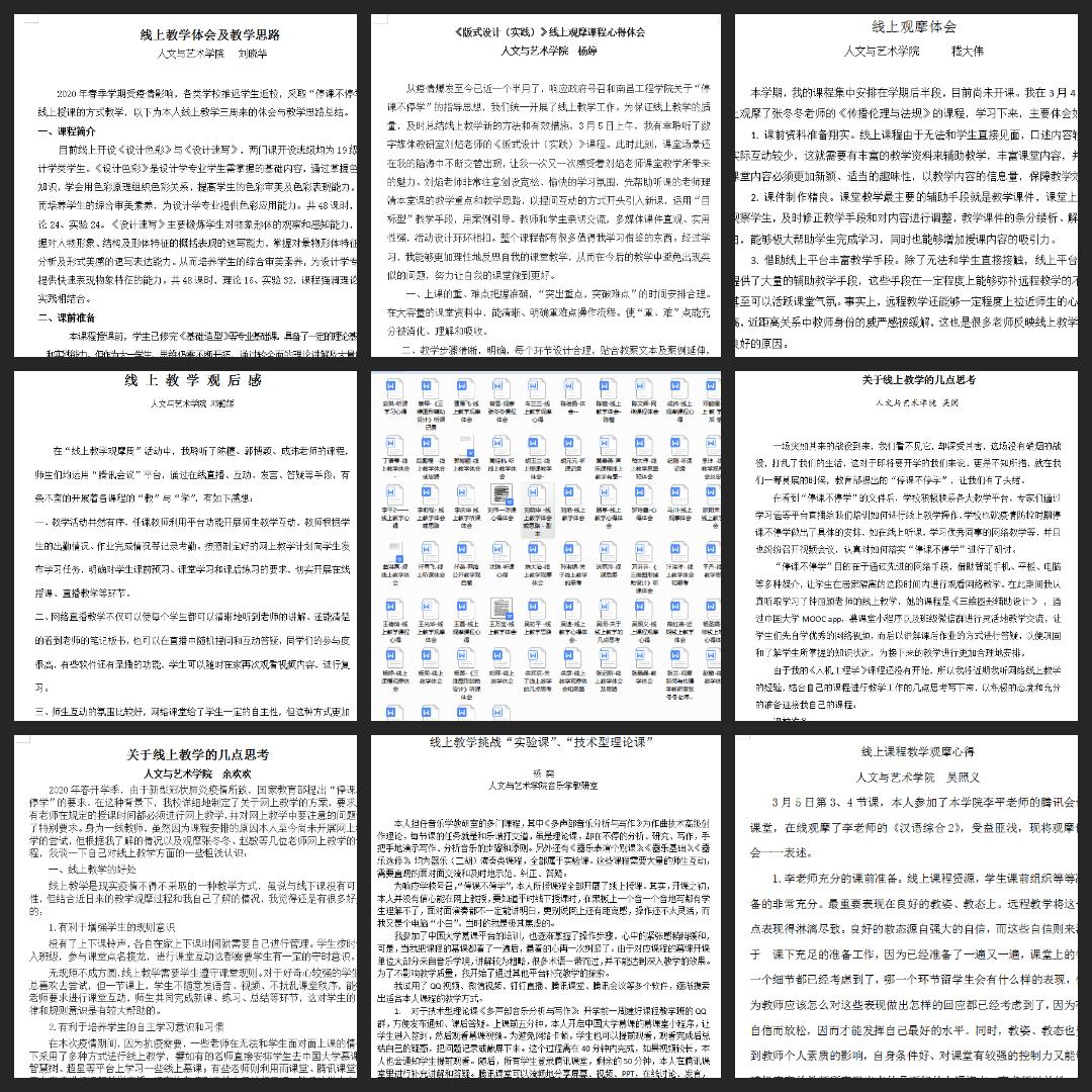 为发挥优秀教师在线上教学中的引领示范作用,及时总结线上教学经验,切实提升线上教学的教学质量,2月26日-3月9日,人文与艺术学院精心组织开展了线上教学观摩周活动,活动覆盖了学院本学期承担教学任务的全部教师。
