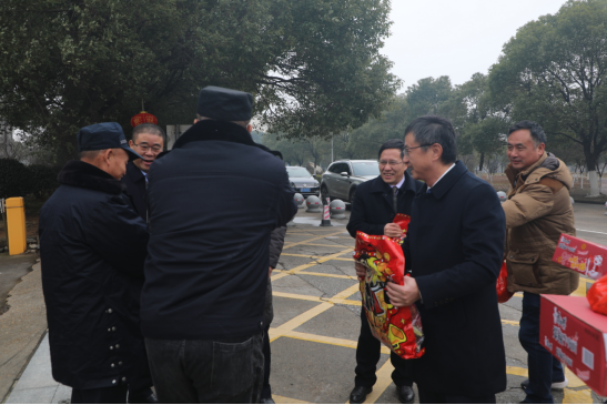 2月1日,正值农历虎年大年初一,校党委书记金志农、校长汪胜前、副校长李明看望慰问了春节期间坚守工作岗位的教职工,后勤保障处、保卫处、校医院等部门负责人及行政片、学工片值班人员陪同。