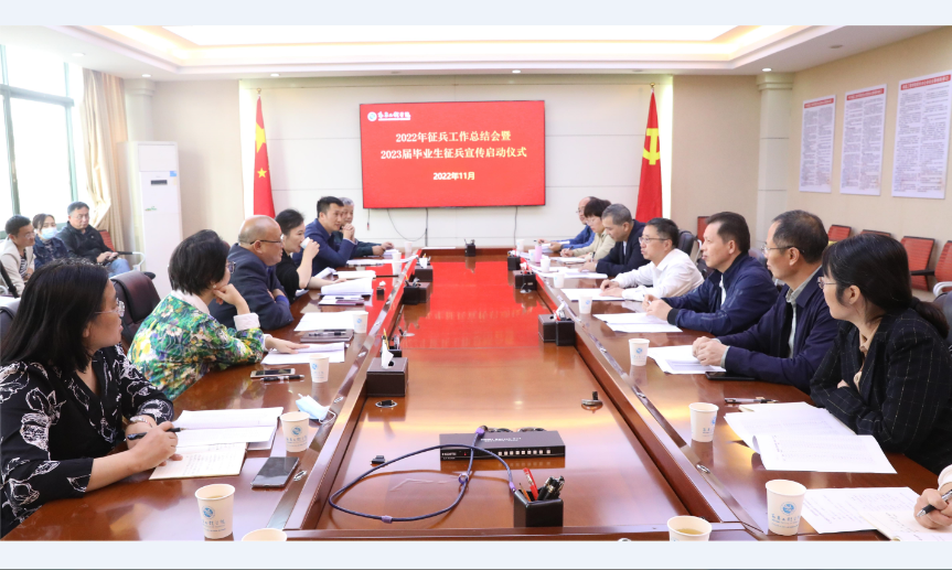 11月9日上午,我校在行政楼300会议室召开2022年度征兵工作总结暨2023届毕业生征兵宣传启动会。校党委书记金志农出席会议并讲话,校党委委员、党委统战部部长欧阳子龙主持会议。