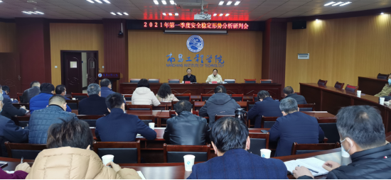 金志农在学校形势分析研判会上肯定了2020年我校安全稳定工作取得的成绩,强调继续全力做好此项工作。他指出,要高度重视,提高站位,始终把学校安全放在工作首位,坚持守土有责、守土尽责,织密扎牢学生安全保护网;各单位要迅速传达2021年全省教育系统安全稳定暨信访工作视频会议精神,明形势、领任务,抓落实,既要打好校园疫情防控阻击战,又要打赢校园安全稳定保卫战,做到“两手抓、两手硬、两全胜”;积极做好全国“两会”和中国共产党成立100周年期间的安全稳定工作,要始终把维护政治安全放在首位,筑牢学校意识形态阵地,全面深入排查化解各类风险隐患,着力做好意识形态安全、毕业生预警、校外实习学生安全教育管理、心理问题学生的疏导、实验室及危化品管理、宿舍、食堂及重点要害部位的消防管理、重点人员教育转化和日常稳控等方面的工作。