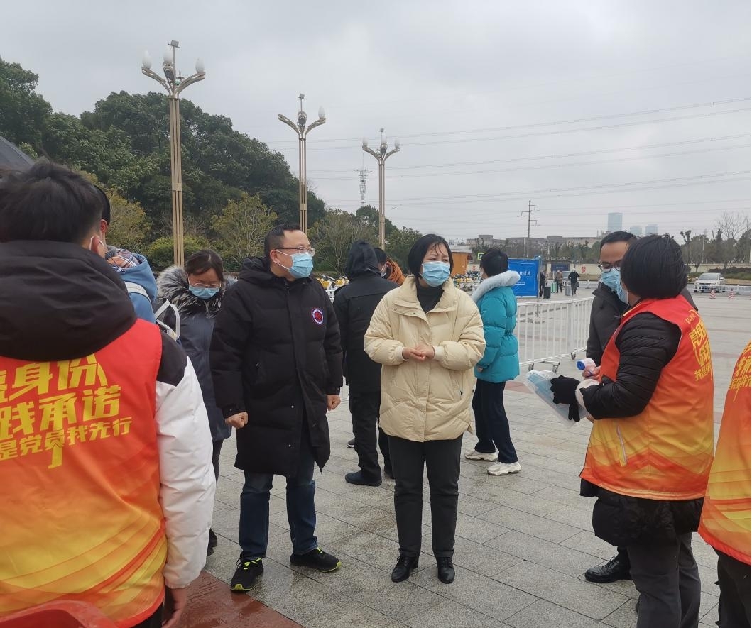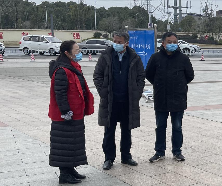 2月19日,校长汪胜前,校党委副书记吴泽俊,副校长李明、周敏丹来到工作一线,检查指导学生开学返校报到及疫情防控情况。