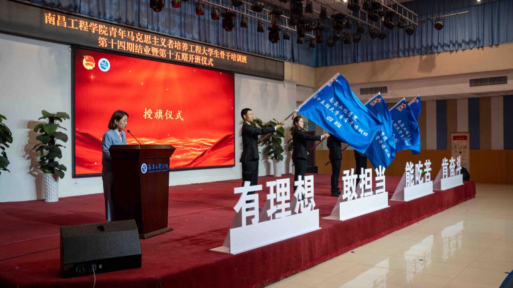 4月11日,我校青年马克思主义者培养工程大学生骨干培训班第十四期结业暨第十五期开班仪式在新时代文明实践中心(大学生活动中心)举行,校党委委员、副校长周敏丹为第十五期大学生骨干培训班学员代表授旗并作开班第一讲,校团委负责同志、各二级学院团委负责同志、第十四期大骨班学员代表及第十五期大骨班学员共200余人参加活动。
