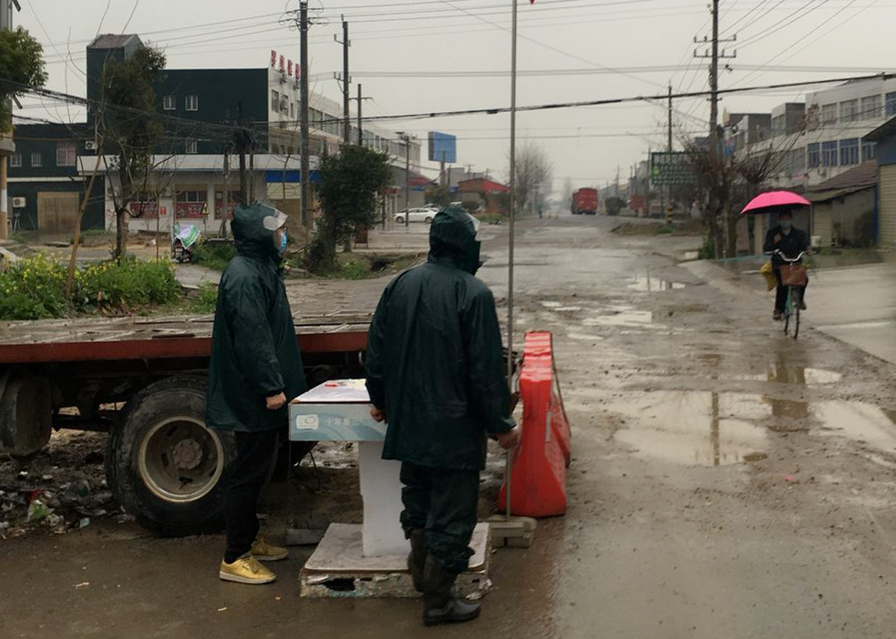 “这里是湖北,疫情地图上颜色最深的地方,我们这个‘关卡’所在地荆门市旧口镇距离疫情风暴核心的武汉200公里,武汉‘封城’第三天我们也‘封村’了。别看它只是个‘不起眼’的关卡,地理位置却十分重要,毗邻省道,十里八村采买都从这里经过。”曹锰告诉记者,平淡的语气中透着一丝凝重。
