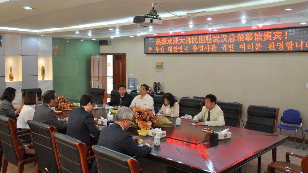 5月13日上午,韩国驻武汉总领事馆领事晋铉湧、金明镇等一行5人来我校进行访问。副校长吴泽俊在行政楼会议室热情会见了总领事一行。