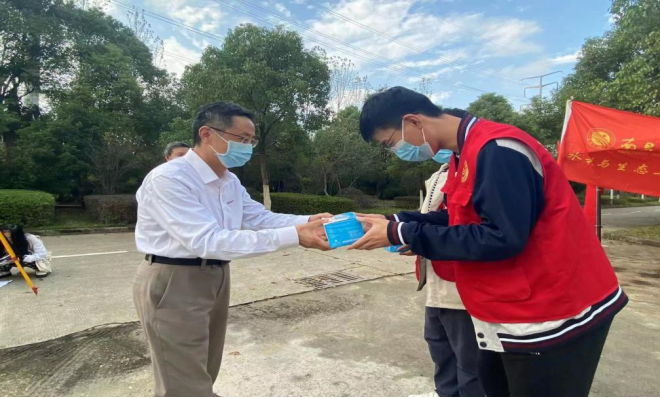 11月28日,校党委书记金志农来到学生宿舍15栋和水利与生态工程学院校内执勤点看望慰问学生和志愿者,为同学们送去口罩等物资。
