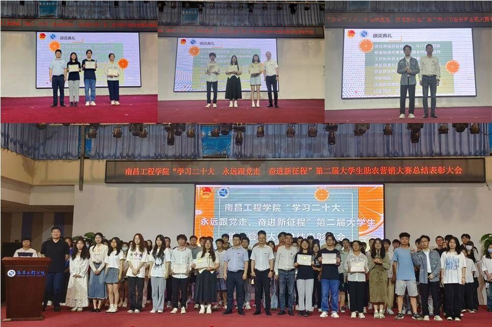 校驻村工作队第一书记章蔚中对活动所取得成效给予肯定,表示大赛的成功举办,创新了我校帮扶石崇村方式方法,也找到了帮扶基础薄弱革命老区高质量发展的一条新路径。石崇村村民委员会向现场发来感谢信,希望广大同学们继续携手为奋力开启中国式乡村现代化建设新征程贡献青春力量。在场嘉宾为获奖团队代表颁奖。2022级风景园林专业林炜鸿和2022级市场营销专业邹佳杰同学分别从参赛经历、营销经验、成长收获、组织活动情况等方面进行分享。